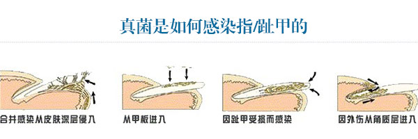 灰指甲系因指/趾甲营养不良或免疫力低下,受真菌感染所致。主要致病菌为红色毛癣菌、须癣毛癣菌、絮状表皮癣菌,少数由其他丝状真菌、酵母样菌及酵母菌引起,偶尔也可由孢子菌、镰刀菌及土色曲霉等引起。