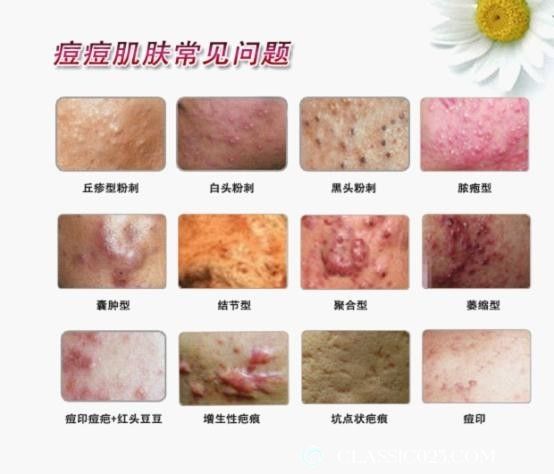 4.萎缩性青春痘:是指丘疹或脓疱性青春痘损害,破坏了皮脂腺体,所引起“凹坑状”的瘢痕,多见于患病时间较长,反复发作,而没有加以重视的患者。